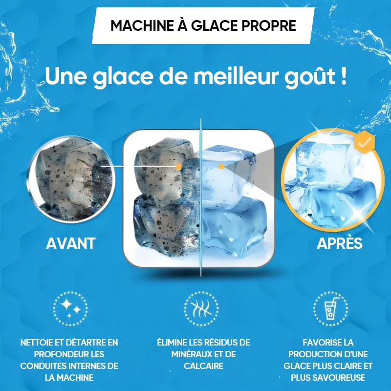 💪 Puissante formule de nettoyage en profondeur : La formule professionnelle élimine efficacement les minéraux et l'accumulation de tartre, maintient l'intérieur de la machine à glace propre et prolonge la durée de vie de l'équipement.