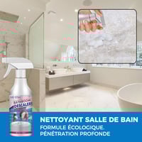Décontamination puissante: il s'agit d'un nettoyant moussant pénétrant qui dissout sans effort la saleté, les taches, la graisse, les résidus de savon, etc. Facilite le nettoyage en profondeur et assure un éclat radieux dans la salle de bain.