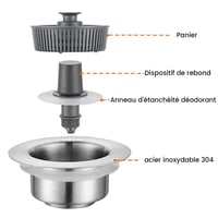 🥬Appuyez sur l'élément filtrant pour sceller et verrouiller l'eau, il s'adapte étroitement et hermétiquement, et aucune fuite d'eau. Associé à un anneau d'étanchéité anti-odeur spécial, il peut prévenir les odeurs et les insectes et assurer une cuisine propre et bien rangée.